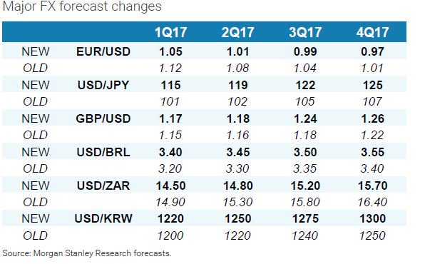 Οι προβλέψεις της Morgan Stanley για τις συναλλαγματικές ισοτιμίες το 2017