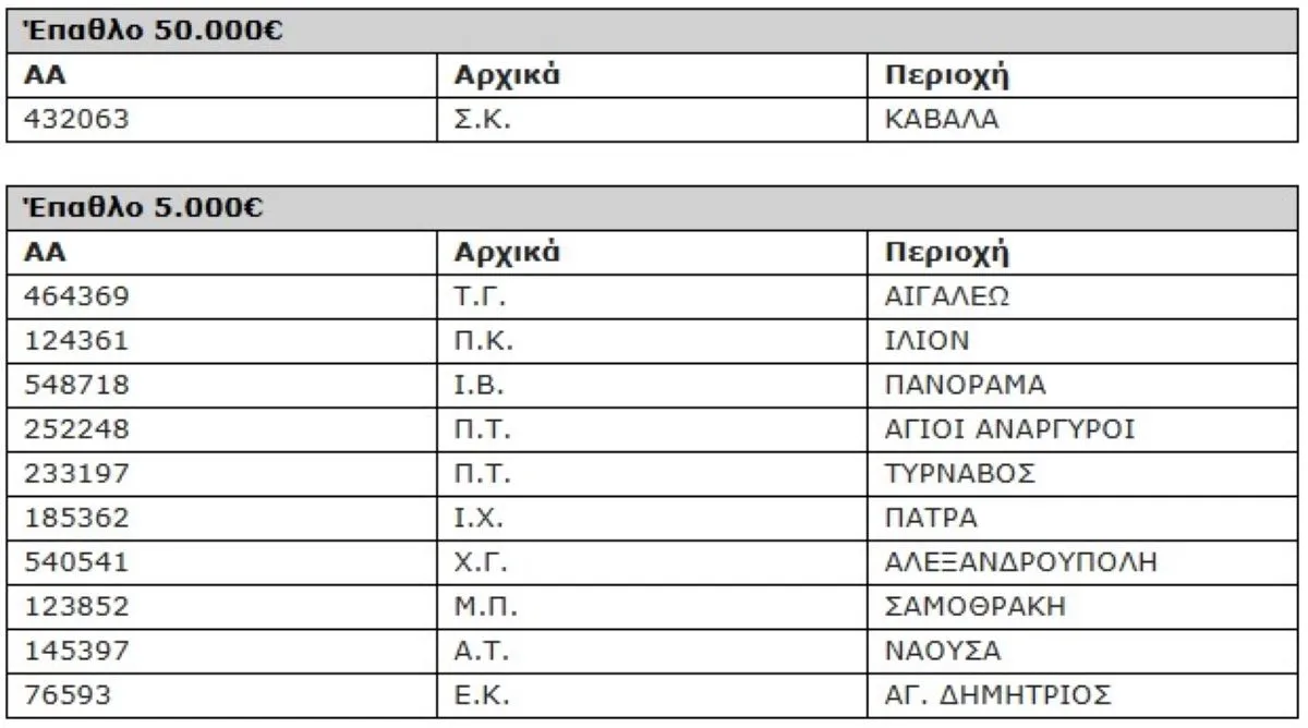 Στην 4η κλήρωση αναδείχθηκαν νικητές από διαφορετικές περιοχές της Ελλάδας (Καβάλα, Αιγάλεω, Τύρναβος, Πάτρα, Αλεξανδρούπολη, Σαμοθράκη, Νάουσα κ.α.), με τα μεγάλα έπαθλα των 50.000€ & 5.000€ να κερδίζουν οι ακόλουθοι: