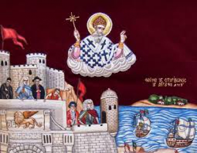Ἐκ γῆς ὁ καλέσας σε, πρὸς αἰωνίους μονάς, τηρεῖ καὶ μετὰ θάνατον ἀδιαλώβητον, τὸ σῶμά σου, Ἅγιε, σὺ γὰρ ἐν σωφροσύνῃ, καὶ σεμνῇ πολιτείᾳ, μάκαρ ἐπολιτεύσω, μὴ μολύνας τὴν σάρκα· διὸ ἐν παῤῥησίᾳ Χριστῷ, πρέσβευε σωθῆναι ἡμᾶς.