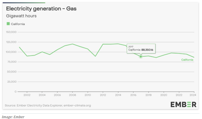 Αυτό έχει επιτρέψει μεγαλύτερη αξιοποίηση της ηλιακής ενέργειας, ιδιαίτερα κατά τις βραδινές περιόδους αιχμής που κυριαρχούνται από το φυσικό αέριο. Συγκρίνοντας τους πρώτους τέσσερις μήνες του 2024 με την ίδια περίοδο του 2023, η παραγωγή φυσικού αερίου μειώθηκε κατά περισσότερο από 18% και έχει μειωθεί κατά 12% σε σύγκριση με την ίδια περίοδο του 2017.