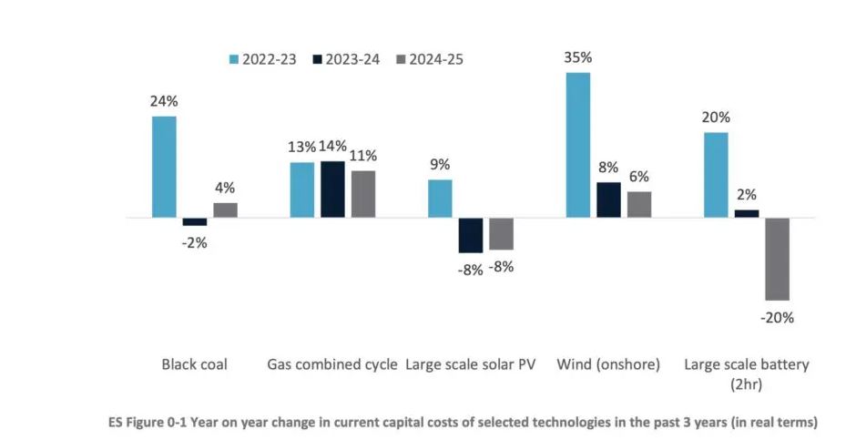 Η τελική έκδοση της έκθεσης GenCost του CSIRO για το 2024/25 δημοσιεύθηκε την Τρίτη και επιβεβαιώνει για άλλη μια φορά - παρά τις εξαιρετικές επιθέσεις από επικριτές τα τελευταία χρόνια - ότι οι ολοκληρωμένες ανανεώσιμες πηγές ενέργειας είναι εύκολα η καλύτερη επιλογή της Αυστραλίας, καθώς επιδιώκει να αντικαταστήσει τις παλαιωμένες και έντονα ρυπογόνες γεννήτριες άνθρακα.