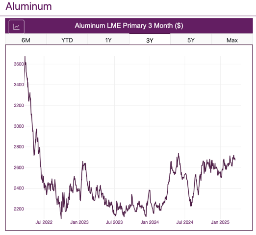 Από την έναρξη του 4ου τριμήνου του 2024, το ασφάλιστρο αλουμινίου Midwest και το τρίμηνο συμβόλαιο μελλοντικής εκπλήρωσής του, αυξήθηκαν κατά 107% και 90%, αντίστοιχα.