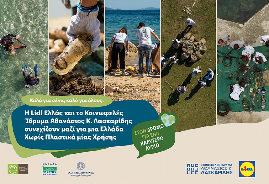 Αποδεικνύοντας στην πράξη πως η βιώσιμη ανάπτυξη διέπει κάθε πρωτοβουλία, στο πλαίσιο της επιχειρηματικής της λειτουργίας, η Lidl Ελλάς συνεχίζει για 4η χρονιά το έργο της καμπάνιας “Plastic Free Greece” σε συνεργασία με το Κοινωφελές Ίδρυμα Αθανάσιος Κ. Λασκαρίδης, υπό την αιγίδα του Υπουργείου Τουρισμού και του Υπουργείου Περιβάλλοντος και Ενέργειας, κάτω από την εθνική καμπάνια «Ελλάδα χωρίς πλαστικά μίας χρήσης».