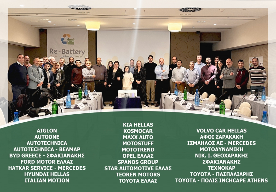 Στις 4 Δεκεμβρίου 2024 ολοκληρώθηκε με μεγάλη επιτυχία στο ξενοδοχείο Elefsina Hotel, το Workshop της Re-Battery με θέμα: «Συμπεράσματα εφαρμογής του Πρωτοκόλλου Διαχείρισης Αποβλήτου EV Μπαταριών την περίοδο 2022-2024 & Εναρμόνιση της λειτουργίας της Re-Βattery με τον ΕΚ 1542/2023».