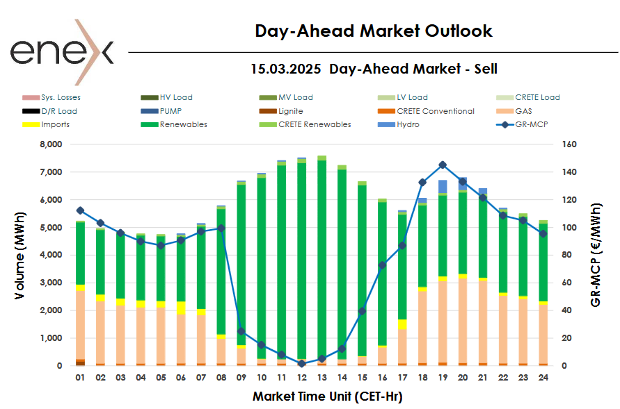 Στα 78,39 ευρώ/MWh διαμορφώθηκε η Τιμή Εκκαθάρισης Αγοράς (ΤΕΑ) της Αγοράς Επόμενης Ημέρας για αύριο 15/3/2025.