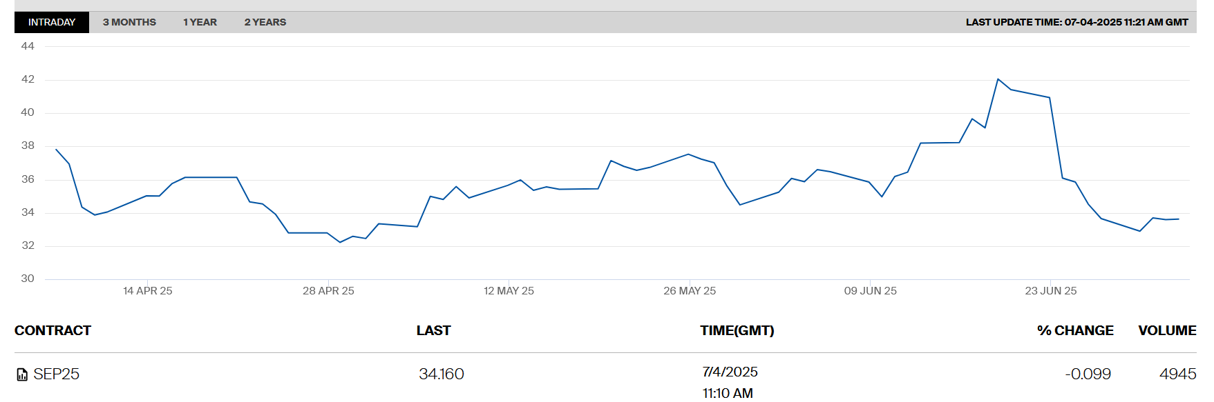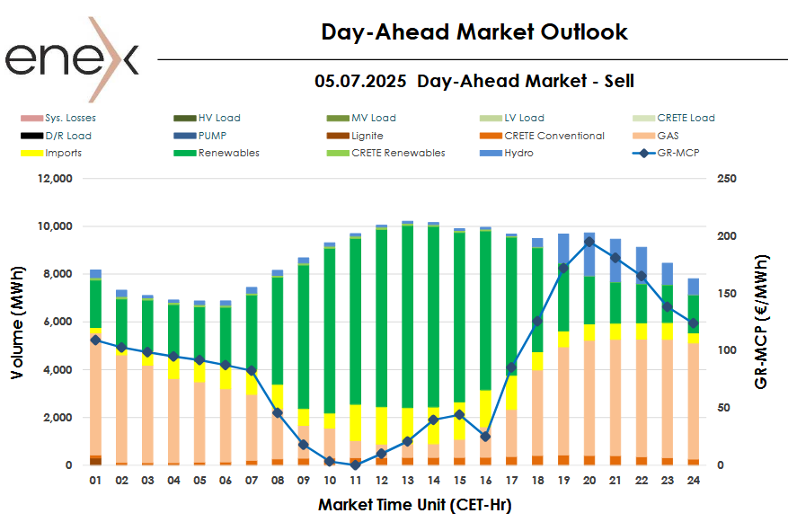 Στα 85,73 ευρώ/MWh διαμορφώθηκε η Τιμή Εκκαθάρισης Αγοράς (ΤΕΑ) της Αγοράς Επόμενης Ημέρας για αύριο 05/7/2025.