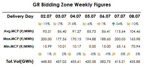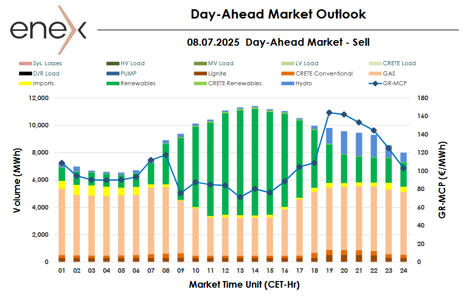 Στα 104,46 ευρώ/MWh (-10%) η Αγορά Επόμενης Ημέρας, την Τρίτη 08/7/2025