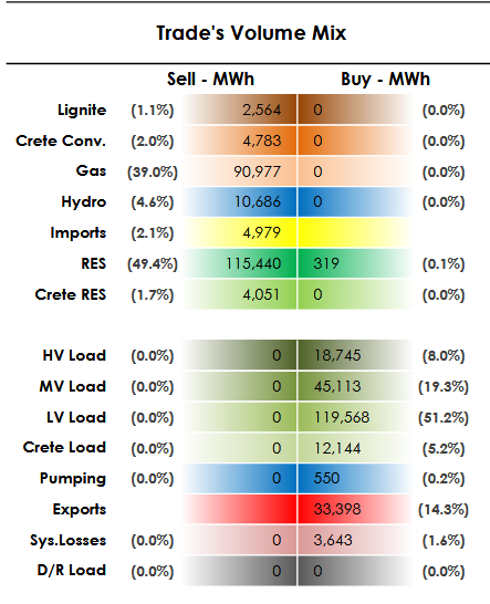Οι εξαγωγές στις 33,398 MWh και οι εισαγωγές στις 4,979 MWh.