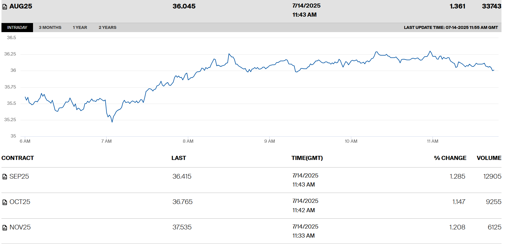 H σημερινή διακύμανση του TTF στο ολλανδικό Χρηματιστήριο Ενέργειας