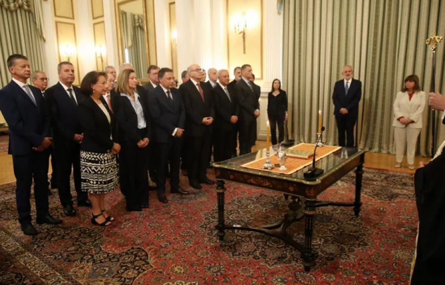 Στο Προεδρικό Μέγαρο γίνεται αυτή την ώρα η ορκωμοσία της υπηρεσιακής κυβέρνησης του Ιωάννη Σαρμά, ενώπιον της Προέδρου της Δημοκρατίας Κατερίνας Σακελλαροπούλου.