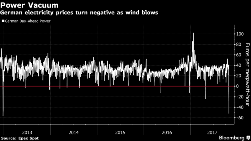 Υπήρξε τόσο πολλή αιολική ενέργεια στη Γερμανία το περασμένο Σαββατοκύριακο που ανάγκασε τους παραγωγούς να πληρώνουν τους καταναλωτές να χρησιμοποιήσουν ηλεκτρική ενέργεια