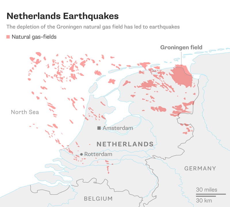 Οι ολλανδικές αρχές προσπαθούν να εξισορροπήσουν την ανάγκη να περιοριστούν οι σεισμοί που κλονίζουν την περιοχή καθώς η δεξαμενή γήρανσης εξαντλείται έναντι της ζήτησης για φυσικό αέριο.