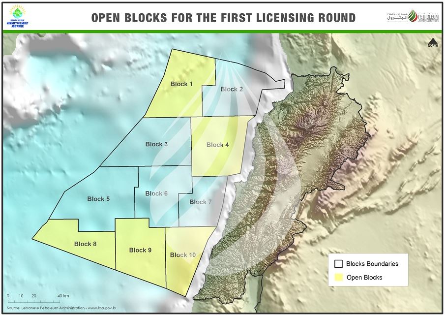 Ο Λίβανος ξεκίνησε εκ νέου τον γύρο αδειών εκμετάλλευσης για πέντε offshore μπλοκ (1,4,8,9 και 10) τον Ιανουάριο μετά από τριετή καθυστέρηση λόγω πολιτικών γεγονότων