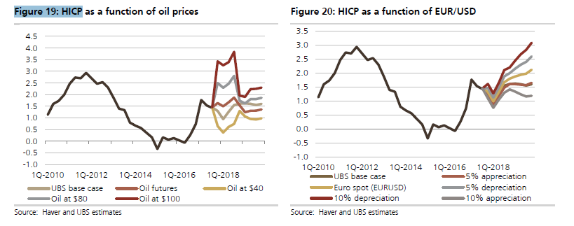 Για το σύνολο της ευρωπαικής οικονομίας έχει σημασία η πορεία του πετρελαίου αλλά και της ισοτιμίας ευρώ/δολαρίου σε σχέση με τις πρώτες αυξήσεις επιτοκίων που η UBS προβλέπει τον Ιούλιο του 2019.