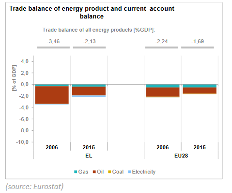 Το εμπορικό έλλειμμα των ενεργειακών προϊόντων μειώθηκε από περίπου 3,5% του ΑΕΠ το 2006 σε 2,1% το 2015 και έτσι πλησιάζει το επίπεδο ελλείμματος του συνόλου της ΕΕ.