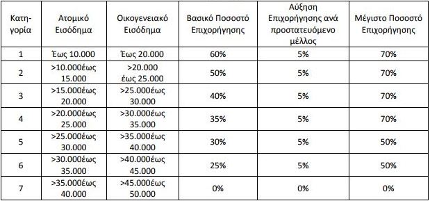 Το ακριβές ποσοστό επιδότησης εξαρτάται από την εισοδηματική κατηγορία στην οποία εντάσσεται ο ενδιαφερόμενος.