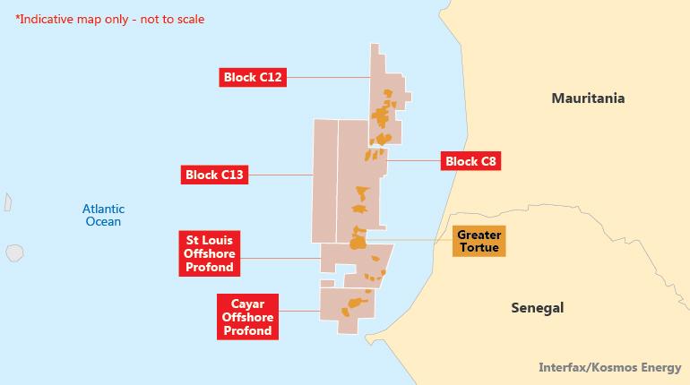 Η Kosmos το 2015 ανακάλυψε μια δεξαμενή φυσικού αερίου στο πεδίο Tortue 1, μέρος του μεγαλύτερου συγκροτήματος Tortue που εκτείνεται στη Σενεγάλη και τη Μαυριτανία, και το οποίο περιείχε περισσότερα από 15 τρισεκατομμύρια κυβικά πόδια φυσικού αερίου.