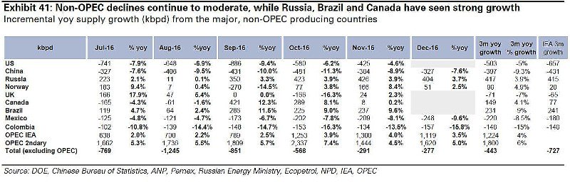 Με μέτριο ρυθμό συνεχίζεται η μείωση της παραγωγής στις χώρες εκτός ΟΠΕΚ, σημειώνει σε ανάλυσή της για την αγορά πετρελαίου η Goldman Sachs.