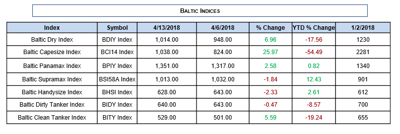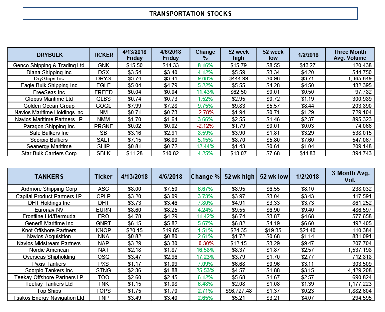 Πηγή: Capital Link. Oι τιμές αφορούν την Παρασκευή 16 Απριλίου 2018.