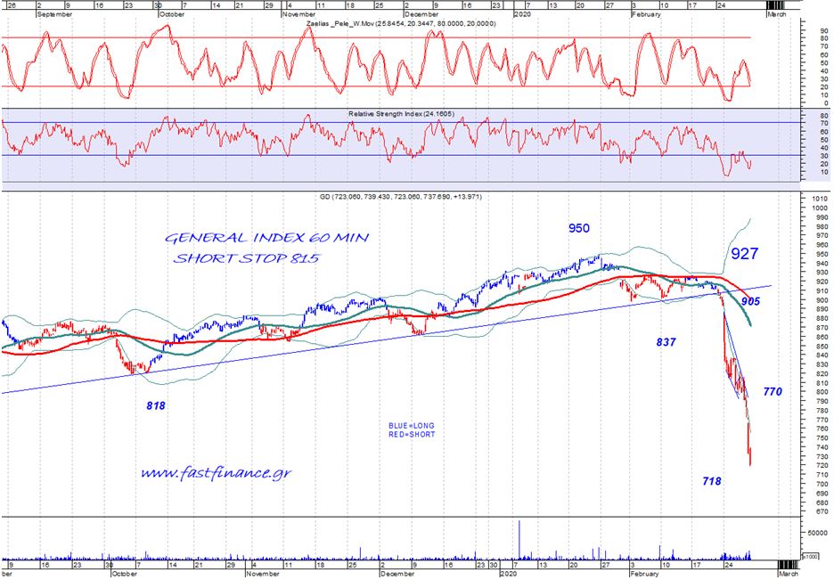Ο Γενικός Δείκτης ολοκλήρωσε τη συνεδρίαση στις 720,35 μονάδες και κινήθηκε σε ένα εύρος μεταξύ 765,69 μονάδων (υψηλό ημέρας) και 718,51 μονάδων (χαμηλό ημέρας).