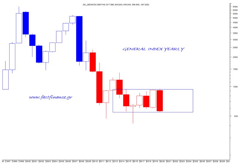 Ο Γενικός Δείκτης έκλεισε στις 538 μονάδες, διασπώντας την στήριξη των 600 μονάδων και τις 550 μονάδες και ακολουθούν οι 500 και οι 480 μονάδες