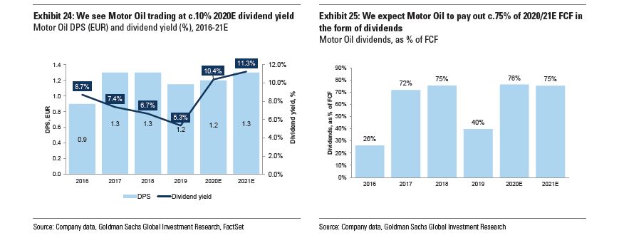 Οι εκτιμήσεις της Goldman για τις υψηλές μερισματικές αποδόσεις που εξασφαλίζει η μετοχή με την προϋπόθεση ότι θα διανέιμει το 2020-21 το 75% του cash flow.