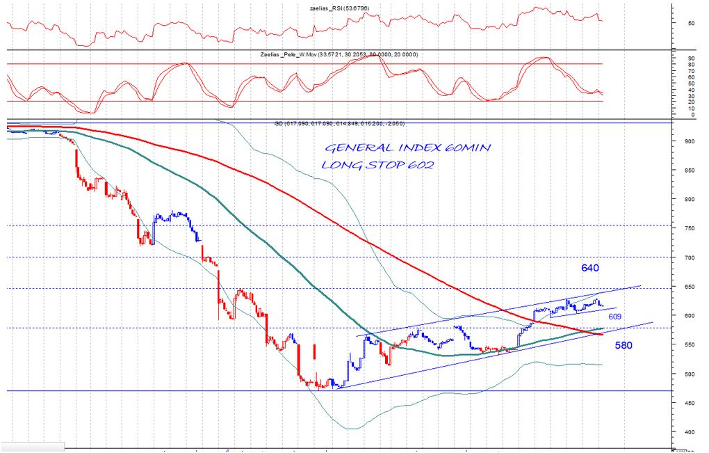 Ο Γενικός Δείκτης ολοκλήρωσε τη συνεδρίαση στις 607,57 μονάδες και διαπραγματεύθηκε σε ένα εύρος από 625,88μονάδες ( υψηλό ημέρας ) έως 606,26 μονάδες ( χαμηλό ημέρας).
