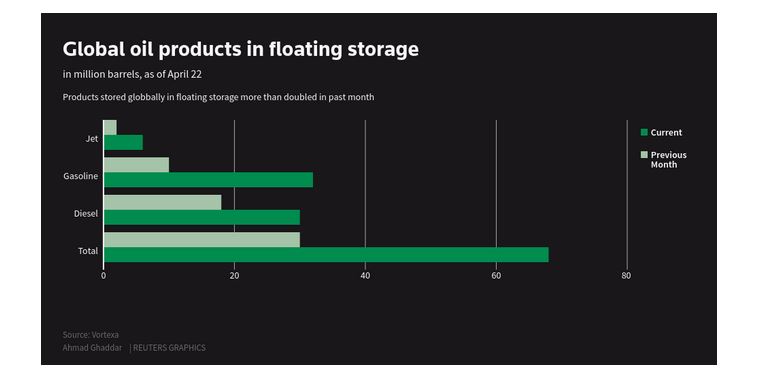 Υπενθυμίζεται ότι δεδομένου ότι υπάρχει περιορισμένος διαθέσιμος χώρος σε δεξαμενές αποθήκευσης στην ξηρά, οι traders σε όλον τον κόσμο σπεύδουν να κάνουν κράτηση δεξαμενόπλοιων διαφορετικών μεγεθών για να αποθηκεύσουν προϊόντα πετρελαίου και να αντιμετωπίσουν την πανδημία του κορωνοϊού.