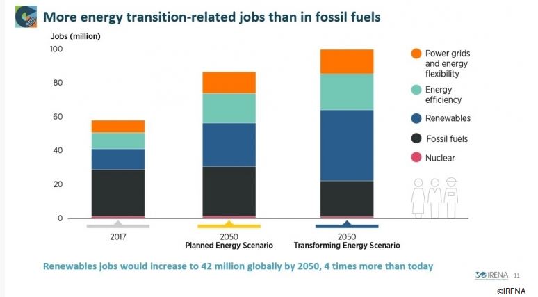 «Κάθε δολάριο που επενδύεται σε ανανεώσιμες πηγές αποδίδει έως και οκτώ φορές. Μια παγκόσμια ενεργειακή ανάκαμψη θα μπορούσε να τετραπλασιάσει τον αριθμό των θέσεων εργασίας στον τομέα των ανανεώσιμων πηγών ενέργειας σε 42 εκατομμύρια έως το 2050 », τόνισε ο Francesco La Camera.