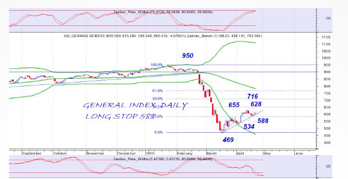 Το 588 πλέον είναι κύρια στήριξη αλλά και stop στο Long σε ημερήσιο κλείσιμο.