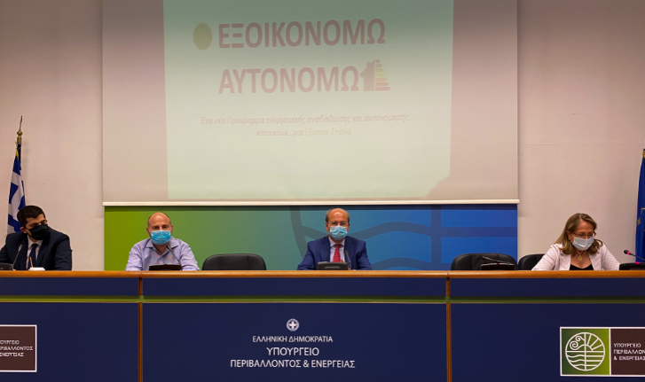 «Τώρα παρουσιάζουμε ένα αναβαθμισμένο πρόγραμμα, το ΕΞΟΙΚΟΝΟΜΩ-ΑΥΤΟΝΟΜΩ» που στοχεύει πέρα από την εξοικονόμηση ενέργειας και στην ενεργειακή αυτονομία των νοικοκυριών, με νέα κίνητρα και παρεμβάσεις που ενθαρρύνουν την παραγωγή και αποθήκευση ενέργειας από ΑΠΕ και την εγκατάσταση «έξυπνων» συστημάτων διαχείρισης ενέργειας.