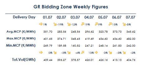 Στα 345,62 ευρώ/MWh διαμορφώθηκε η Τιμή Εκκαθάρισης Αγοράς (ΤΕΑ) της Αγοράς Επόμενης Ημέρας για αύριο Πέμπτη 7/07/2022.