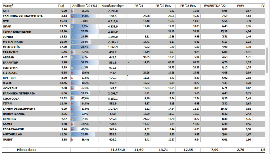 Τούτων δοθέντων η Μυτιληναίος δείχνει ότι θα είναι για τους επόμενους μήνες η πέον hot επιλογή μετά και των πρώτη αναθεώρηση για κερδοφορία του 2022 από την Piraeus Sec στα 402 εκατ ευρώ και αντίστοιχα την αναθεώρηση της τιμής -στόχου στα 26, 3 ευρώ. H Motor Oil έχει τα 22 ευρώ από την Goldman με δεδομένη την φορολογία του 33% που αναμένεται να θεσπισθεί από την ΕΕ, ενώ αντίστοιχα αναμένεται να κινηθεί και η μετοχή της Heleniq Energy (πρώην ΕΛΠΕ). Η ΔΕΗ αναμένεται να ανακοινώσει σημαντική εξαγορά έχοντας υπογράψει ήδη MOU με την Enel στην Ρουμανία και παράλληλα αναμένεται η πρόταση της Fisrt Sentier για την Τέρνα Ενεργειακή.