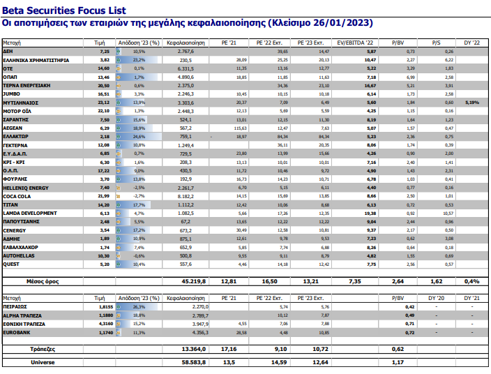 Δύο συνεδριάσεις πριν το τέλος του πρώτου μήνα του 2023 ο Γενικός Δείκτης κάνει ένα εξαιρετικό ξεκίνημα προσεγγίζοντας απόδοση 9,2% από την αρχή του έτους, διπλάσια σε σχέση με αυτή που κατέγραψε το 2022.