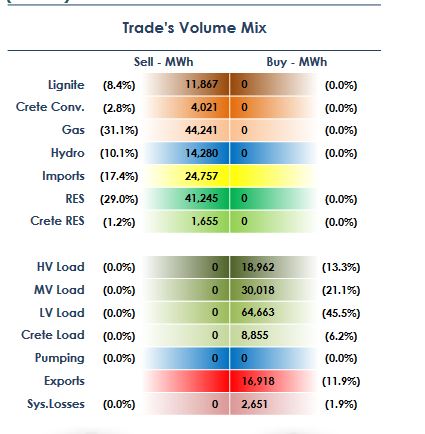 Οι εξαγωγές στις 16,918 MWh και οι εισαγωγές στις 24,757 MWh.