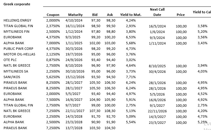 To συμβόλαιο Μαρτίου 2024 του Μυτιληναίου έκλεισε στο 37,84 δηλαδή 48 πόντους υψηλότερα από τη spot και της ΔΕΗ στα 11,09 δηλαδή 19 πόντους υψηλότερα από τη spot.