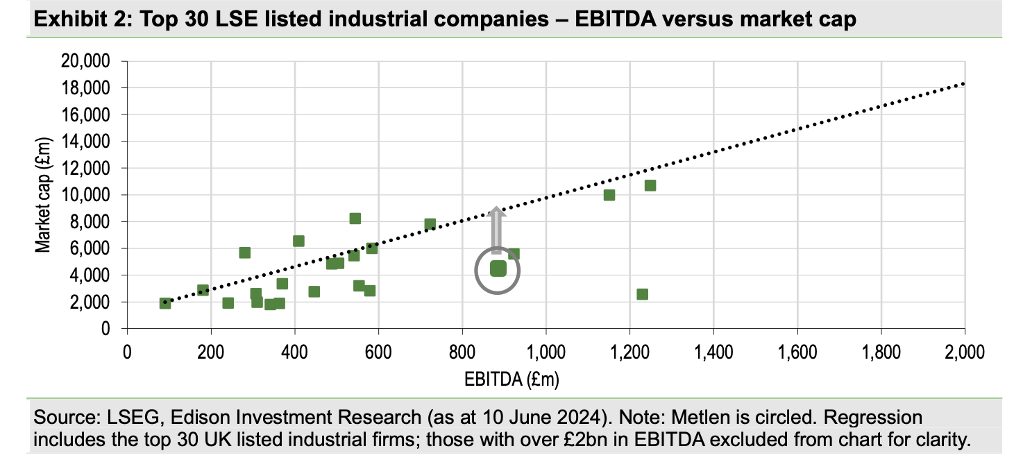 Η ανάλυση της Edison προβάρει την Metlen ( Μυτιληναίος) του FTSE 100 αναλύοντας και το μεγάλο discount στο οποίο βρίσκεται η κεφαλαιοποίηση, έναντι των ομοειδών διεθνών ομίλων στην καινούργια φάση.