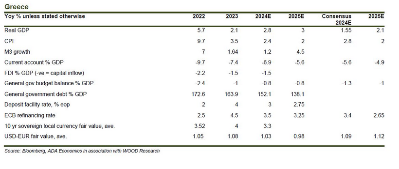 Στο 2,8% βλέπει την ανάπτυξη της Ελλάδας το 2024 και στο 3% το 2025 η Wood, αλλά τηρεί μια πιο επιφυλακτική στάση καθώς οι αναφορές για πυρκαγιές έχουν επανέλθει φέτος.