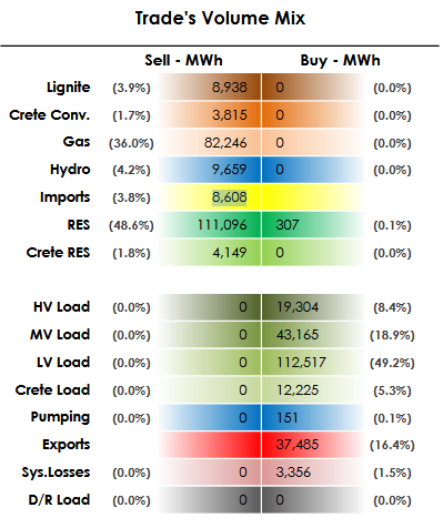 Οι εξαγωγές στις 37,485 MWh και οι εισαγωγές στις 8,608 MWh.