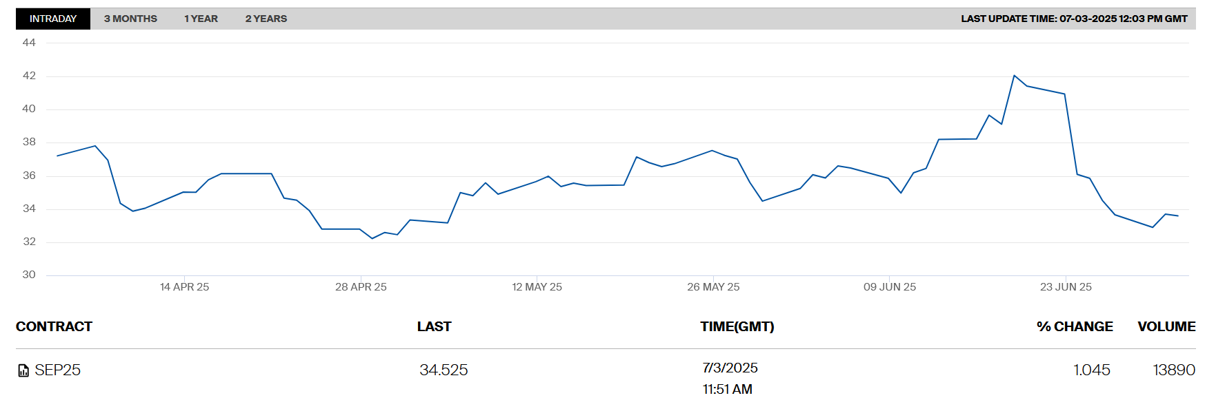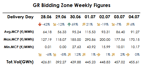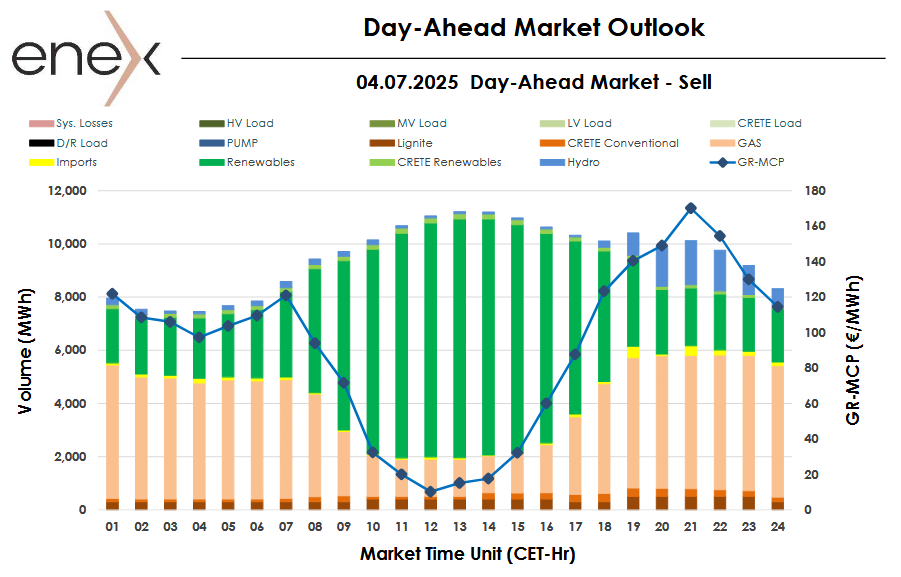 Στα 91,27 ευρώ/MWh διαμορφώθηκε η Τιμή Εκκαθάρισης Αγοράς (ΤΕΑ) της Αγοράς Επόμενης Ημέρας για αύριο 04/7/2025.