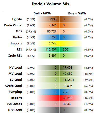 Οι εξαγωγές στις 36,242 MWh και οι εισαγωγές στις 2,746 MWh.