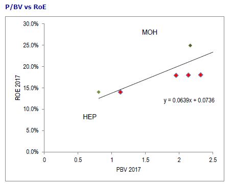 Στα 7 ευρώ που πρσδιορίζει σαν τιμή - στόχο της μετοχής εκτιμά ότι τα ΕΛΠΕ θα διαπραγματεύονται 7,7 φορές τα κέρδη του 2017 και 5 φορές το EBITDA.