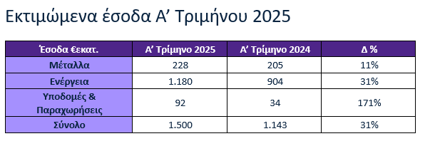Παράλληλα, στον τομέα των υποδομών και παραχωρήσεων, η ΜΕΤΚΑ ΑΤΕ υπερδιπλασίασε τον κύκλο εργασιών της στο α’ τρίμηνο του 2025.