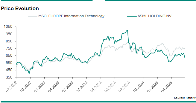 «Η μετοχή της ASML συνεχίζει να υποαποδίδει, σημειώνοντας πτώση 36% από το υψηλό της τον Ιούλιο του 2024. Τα τελευταία οικονομικά αποτελέσματα ήταν και πάλι απογοητευτικά, με τη διοίκηση να προβλέπει μηδενική αύξηση εσόδων για το 2026. Αν και αναγνωρίζεται ότι οι εκτιμήσεις της αγοράς παραμένουν υπερβολικά αισιόδοξες και χρειάζονται περαιτέρω αναπροσαρμογή προς τα κάτω, εκτιμάται πως η μετοχή πλησιάζει πλέον σε σημείο καμπής και ότι η ανάπτυξη θα επανεκκινήσει το 2027», γράφει η UBP.