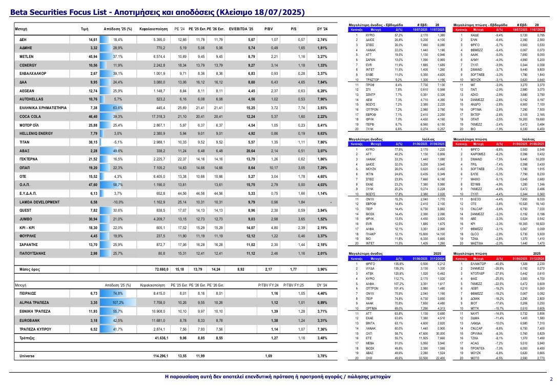 Στις κυριότερες δημοσιεύσεις επισημαίνονται οι Verizon (21/07), Coca Cola, General Motors, Philip Morris (22/07), AT&T, CME Group, Google, IBM, Tesla (23/07), Intel, Blackstone (24/07).