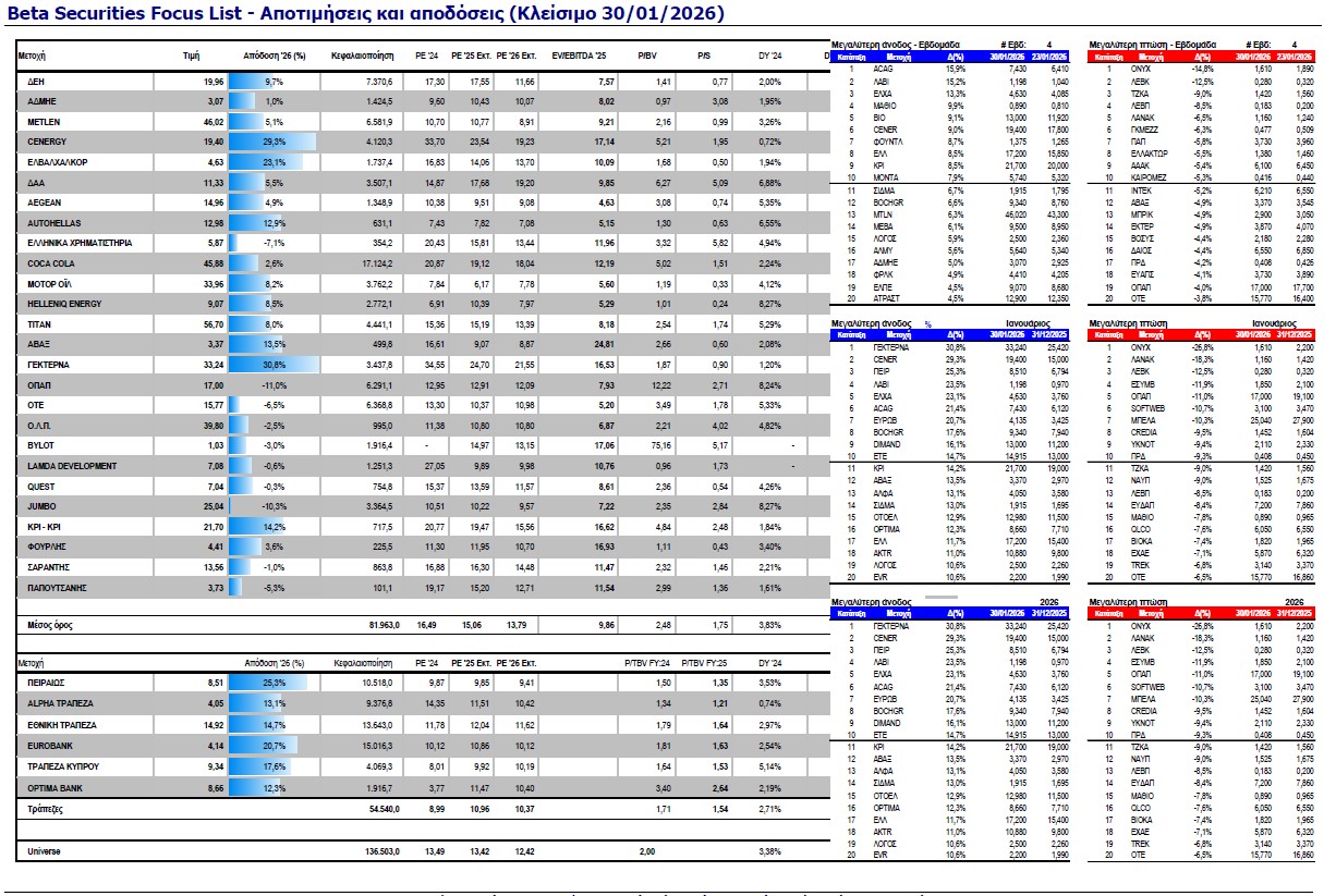Σε αυτό το περιβάλλον, το Χρηματιστήριο Αθηνών δεν λειτουργεί πλέον ως ουραγός ή συγκυριακό στοίχημα, αλλά ως αγορά που διεκδικεί ένα πιο ενεργό ρόλο στον διεθνή επενδυτικό χάρτη. Το αν η δυναμική αυτή θα έχει διάρκεια, θα κριθεί λιγότερο από τη ροή των κεφαλαίων και περισσότερο από την ικανότητα των εισηγμένων να επιβεβαιώσουν, μέσω των αποτελεσμάτων και των επιχειρηματικών τους πλάνων, ότι η επιστροφή σε αποτιμήσεις προηγούμενων κύκλων αυτή τη φορά στηρίζεται σε πιο στέρεες βάσεις. Οι εκτιμήσεις για την κερδοφορία των εταιριών είναι υποστηρικτικές τόσο για το 2025 όσο και για το 20226 και ο Φεβρουάριος θα λειτουργήσει σαν ένα πρώτο τεστ των ενσωματωμένων προσδοκιών με την πραγματικότητα.